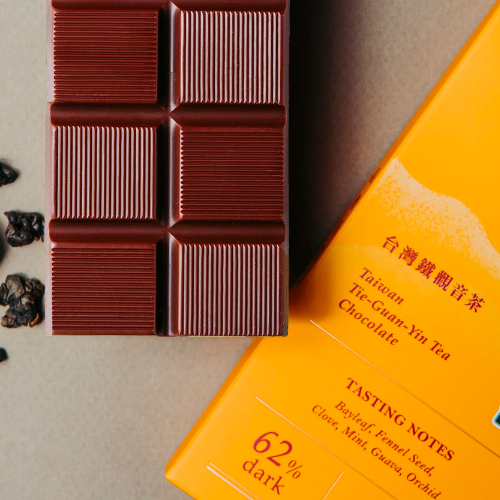 以臺灣一號62%巧克力做為基底,融合名聞遐邇的鐵觀音茶,將鐵觀音茶的青果香與高雅馥郁的冷冽茶香與臺灣一號的太妃糖熱帶果香完美結(jié)合,品味過程中茶種的甘醇在巧克力中巧妙湧現(xiàn),喉韻芬芳不散。