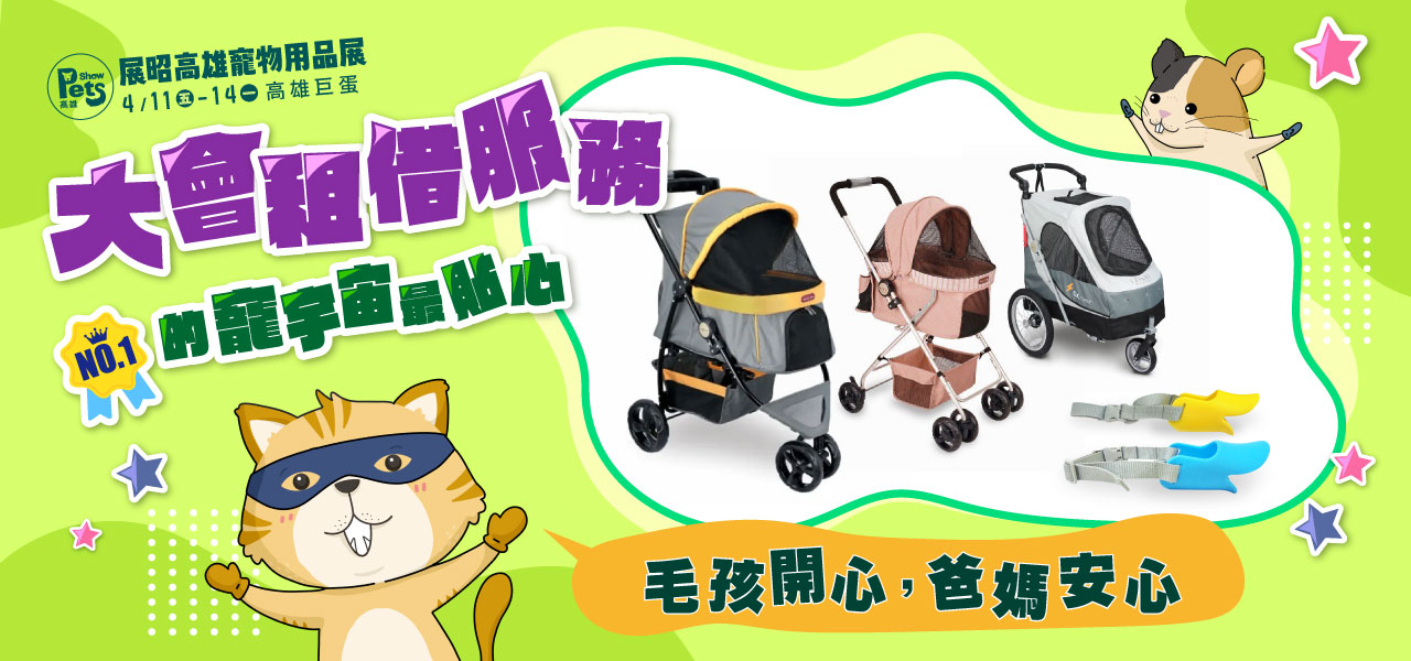提供推車及防咬口罩讓毛爸媽們於展場(chǎng)內(nèi)租借使用。