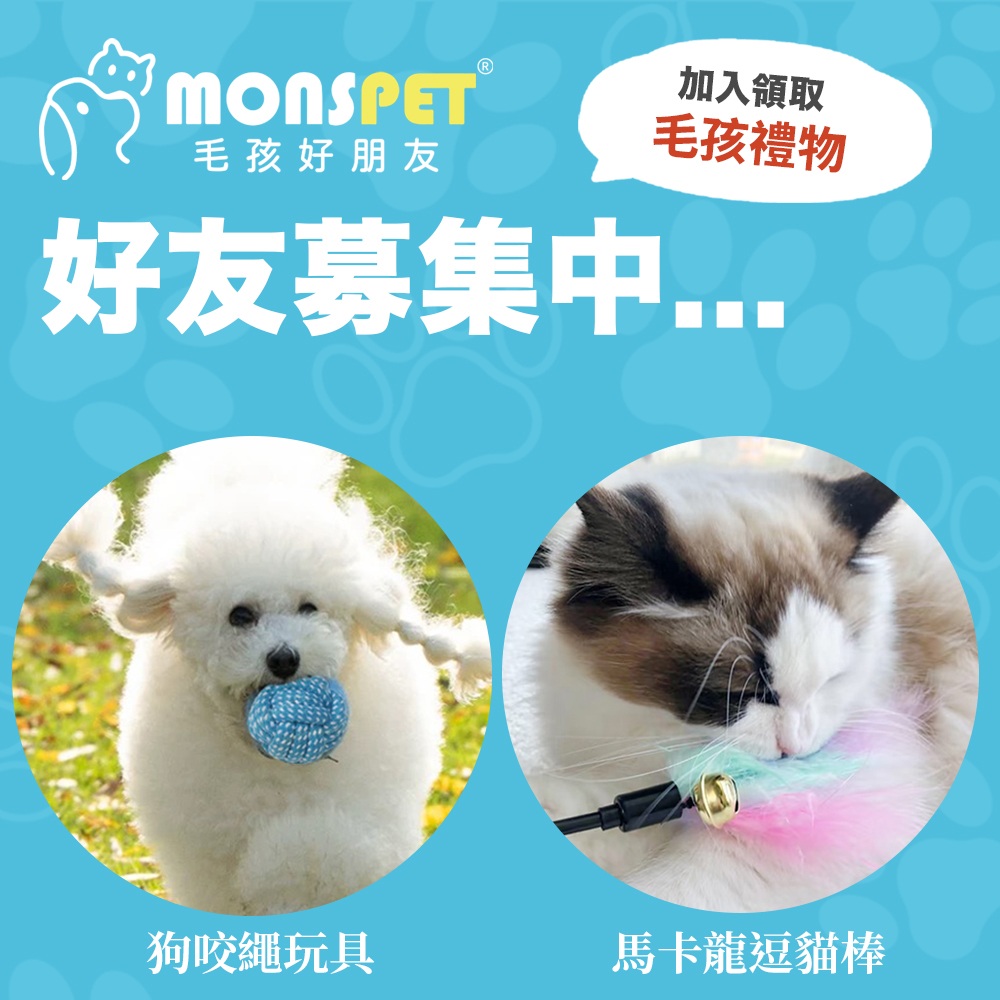 追蹤ig、加入LINE好友,即可獲得馬卡龍色逗貓棒或狗咬繩玩具。