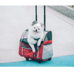 多功能寵物拉桿箱-圖騰灰紅