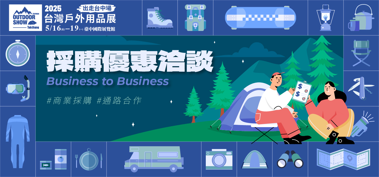 無論你是正在選購新裝備的營地主、尋找新商品的戶外用品通路店家、追求機能升級的改車廠商,或是有意與品牌合作的代理/經銷/採購單位,臺灣戶外用品展已為你準備好一站式洽談平臺!