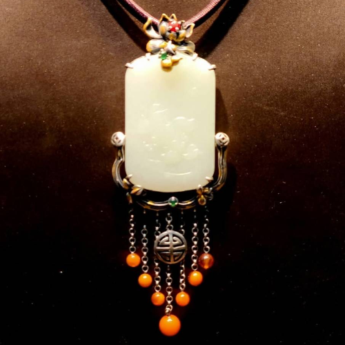 Crafted primarily from Hetian white jade, its texture is as smooth as clouds and as pure as the heart. The sterling silver setting symbolizes the halo of the bright moon, imbuing the jade with structure and an ancient aesthetic. The dangling tassel at the base evokes a sense of unrestrained light, like clouds dripping with dew. The beeswax at the end resembles frozen time, transforming light into a gentle gold. The stillness of Hetian white jade contrasts with the coldness of silver, while the warmth of beeswax softens the light. Together, these three elements embody the harmony of yin and yang, the harmony of heaven and earth. The dangling tassel allows the piece to move subtly with the wearer's breath and steps, as if aura emanates from the wearer, embodying the spirit of the pendant. White jade symbolizes the heart, silver represents brightness, and beeswax embodies time. This symbolizes the idea that "a clear mind reveals truth, and flowing light reveals itself."